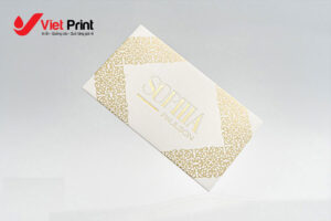 Danh thiếp, name card, card visit, business giấy mỹ thuật có vân, ánh kim là thuộc dòng sản phẩm cao cấp, mang tính thẩm mỹ cao. Được thiết kế độc đáo, hoa mỹ và in danh thiếp giấy mỹ thuật thường được gia công thành phẩm bế nổi, bế chìm, ép kim, phủ uv định hình … tùy theo yêu cầu của từng Khách hàng.